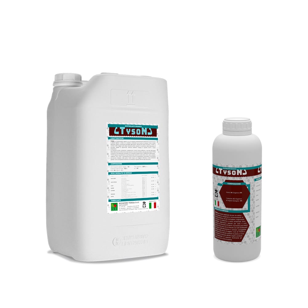 Tyson is a biostimulant of plant origin obtained from the enzymatic hydrolysis of the biomass of the Fabaceae.