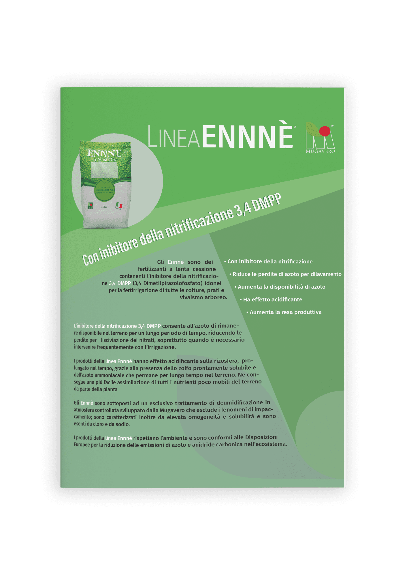 Ennnè son fertilizantes de lenta  liberación que contienen el inhibidor de nitrificación 3,4 DMPP (3,4 Dimetilpirazolofosfato) idóneo para la fertirrigación de todos los cultivos, céspedes y viveros arborícolas.